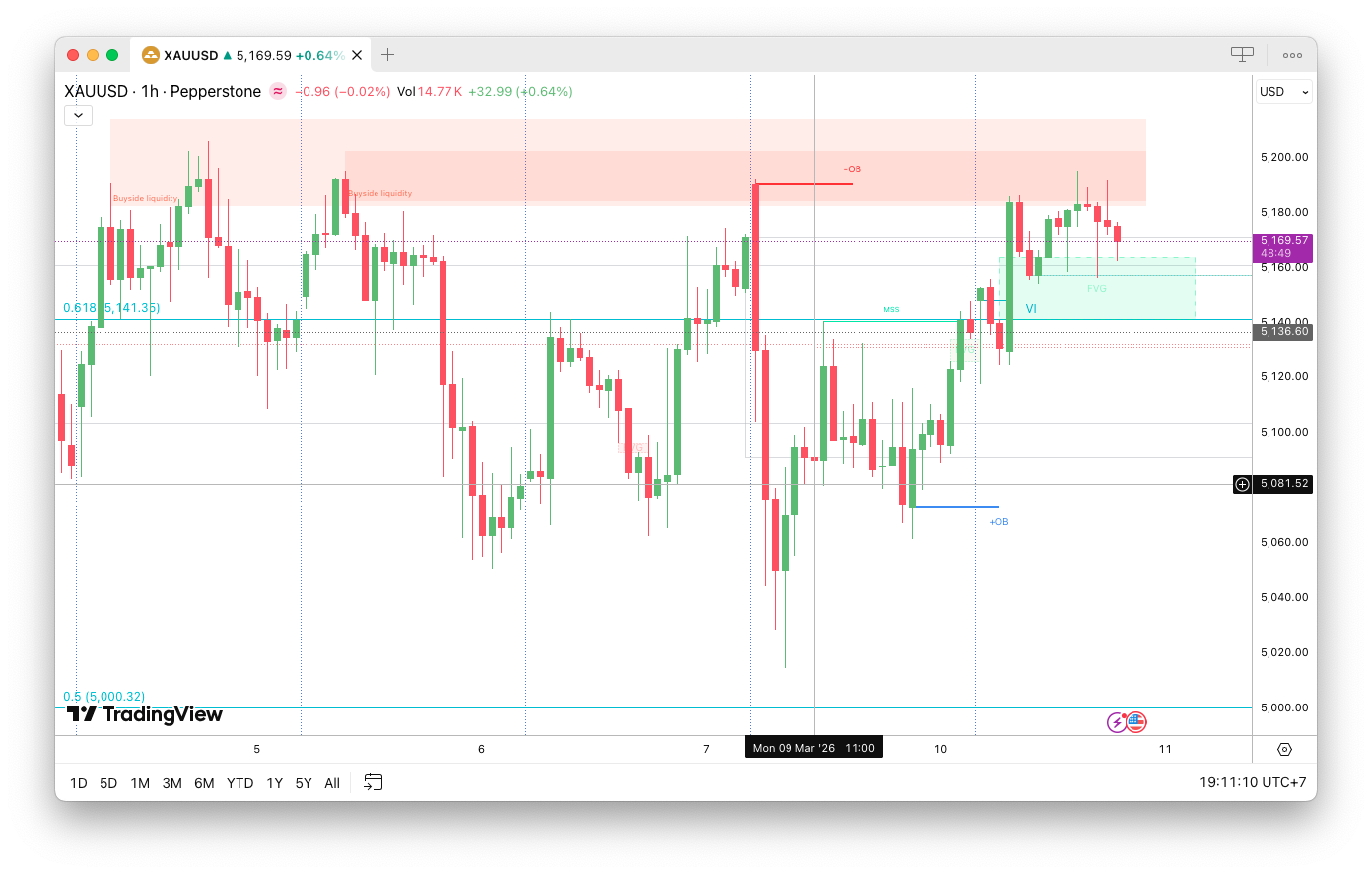 Selamat datang kembali di ariftrader.com! Bagi Anda yang rutin trading emas, pergerakan XAUUSD belakangan ini memberikan peluang yang sangat menarik, terutama jika kita membedahnya menggunakan kacamata Inner Circle Trader (ICT) untuk XAUUSD selasa 10 maret 2026.